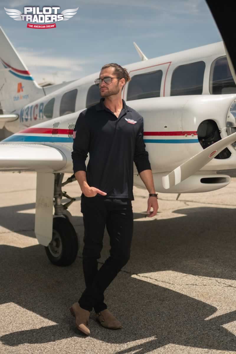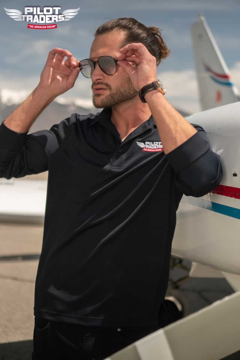 PILOT TRADERS Polo Shirt Long Sleeves Black